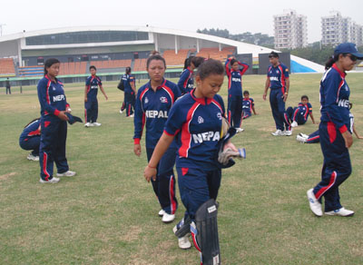 काठमाडौं, कात्तिक १३- एसिसी ट्वान्टी-ट्वान्टी महिला एसिया कप क्रिकेटबाट नेपाल बाहिरिएको छ। आज भएको खेलमा आयोजक चीनसँग हार बेहोरेपछि नेपाल प्रतियोगिताबाट बाहिरिएको हो। यसअघि नेपाल पहिलो खेलमा श्रीलङ्का र दोस्रो खेलमा बङ्गलादेशसँग पराजित भएको थियो।