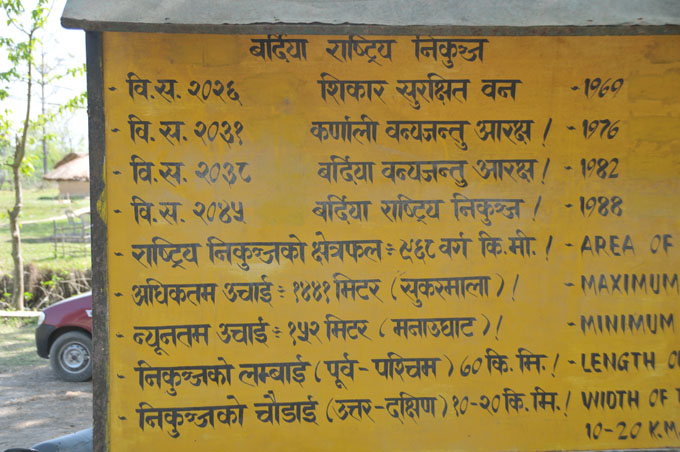 बर्दियामा बाघ देख्न पाइन्छ। टाइटनिक फिल्मका नायक लियोनार्दो डि क्याप्रियोले २०६५ जेठमा एउटै फ्रेमभित्र पाँच बाघ खिचेका थिए। मलाई पनि मन छ बाघ र गैंडा हेर्न। चैत–वैशाखमा तीनको दर्शन मिल्न सक्छ। त्यतिबेला ठाकुरद्वारामा फेरि मिठो निन्द्रा निदाउन पाइनेछ।