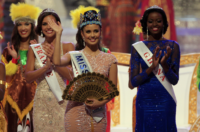 Megan Youngबाली- बाली प्रान्तमा भएको मिस वर्ल्डको उपाधि फिलिपिन्सकी २३ वर्षे मेगन योङले जितेकी छिन्। शनिबार आयोजित कार्यक्रममा गतवर्षकी मिस वर्ल्ड वेन जिया युले ताज पहिराइदिएकी थिइन्। उनी टेलिभिजन प्रस्तोता समेत हुन्। ‘म अहिलेसम्मको उत्कृष्ट मिस वर्ल्ड हुने वाचा गर्छु,’ मिस वर्ल्डको ६३औं संस्करणमा उनले भनिन्। मुश्लिम समुदायको विरोधको कारण कडा सुरक्षाभित्र सम्पन्न मिस वर्ल्डमा फिलिपिन्स, फ्रान्स, गाना, ब्राजिल, स्पेन, ग्रिल्बाल्टर, अष्ट्रिलिया, नेपाल,बेलायत, इण्डोनेसिया र जमैका उत्कृष्ट १० मा परेका थिए। प्रतियोगितामा एक सय २७ देशका प्रतियोगीहरुले सहभागिता जनाएका थिए।