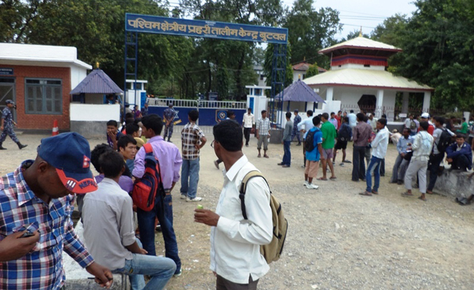 कमला चौधरी, बुटवल- नवजवान युवाहरु बीच बाटोमा स्याँस्याँ र फ्याँफ्याँ गर्दै दौडिरहेका थिए। नजिकै गएर बुझ्दा म्यादी प्रहरीमा भर्ना हुनेको लाम रहेछ। पश्चिम क्षेत्रीय तालिम केन्द्र बुटवल वरिपरिको उनीहरुकै भीडले ओगटिएको थियो। सबैको ध्यान छनौटमा परुँला र जागिर गरुँला भन्ने थियो।