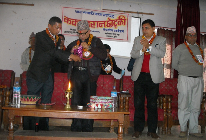 सो आवसरमा प्रमुख अतिथि देवकोटाले थारू भाषा साहित्य, संस्कृतिको संरक्षण सवर्द्धनका लागि थारू स्रस्टाहरुले कलम चलाउनु पर्ने कुरामा जोड दिनु भयो। वर्तमान अवस्थामा थारूहरु शिक्षित हुँदै गए पनि थारू भाषाप्रति त्यति चासो नदिएको बेला यस्ता रचनात्मक कार्यले अन्य थारू साहित्यकारहरुलाई पनि कलम चलाउन झक्भक्याउँछ भन्नु भयो। मध्यपश्चिम क्षेत्रको तराई एवं सुर्खेतमा बसोवास गर्ने आदिवासी थारूहरुको भाषा साहित्य कला संस्कृतिको प्रवर्द्धनका लागि मध्पश्चिमाञ्चल विश्व विद्यालयले छुट्टै प्याकेजको कार्यक्रम लागु गराउनका लागि थारू भाषा साहित्य संस्कृति पहिचान गर्नका लागि थारू समुदायमा दाङ र बर्दियाका चारवटा थारू गाउँमा थारू ग्राउण्ड प्रस्ताव क्याविनेटबाट पारित भएको बताउनु भयो। विश्वविद्यालयको ध्यान थारू भाषा संस्कृति संस्कारलाई गति प्रदान गर्ने नीति रहेको बताउनु भयो। साहित्यले पाठकलाई नजिक ल्याउन सक्नु पर्छ, साहित्यले रुवाउन र हँसाउन जान्नुपर्छ, त्यस्तो साहित्य सफल हुने उहाँले बताउनु भयो।