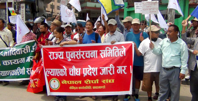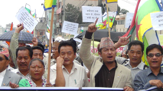 त्यस्तै महासंघका पूर्व अध्यक्ष राजकुमार लेखीले संविधान सभाभित्र रहेको एउटा शक्तिले आदिवासी जनजातिको पहिचान मेटाउने प्रयास गरेको बताए। उनले संविधान सभा बाहिर पनि त्योभन्दा ठूलो शक्ति रहेको देखाउनका निम्ति यो प्रदर्शन गरेको बताए। उनले संघीय संरचनाको निर्माण गर्दा पहाड र हिमालमा बराबर प्रदेश बनाइउनुपर्ने बताए।