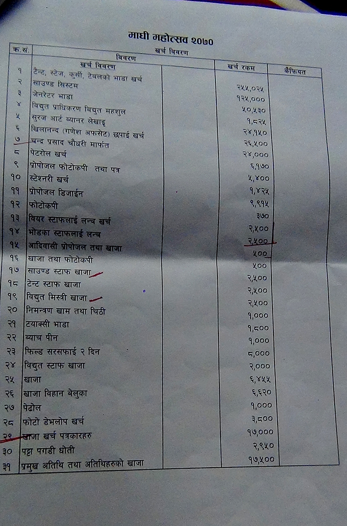 विस्तृत पढ्नुस् : माघी महोत्सवको खर्च ‘जेपिटी’