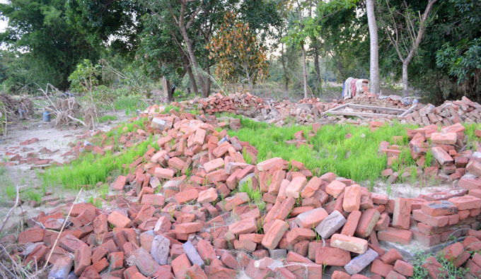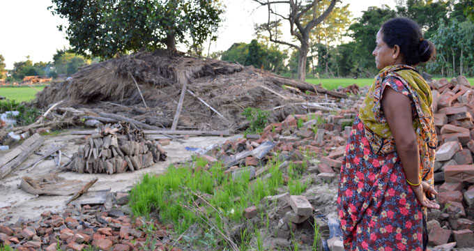 सीता चौधरी भत्किएको घर देखाउँदै।