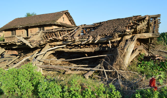 बानियाभार-४ ढुंग्रहीको यो घर खस्दा तीन जनाले ज्यान गुमाएका थिए।