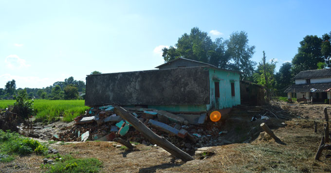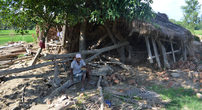बानियाभार-४ ढुंग्रहीको एक घर बाढीले भत्काएपछि।