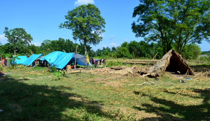 पदनाहाका बाढी विस्थापितहरु यसरी नै त्रिपाल टाँगेर बसेका छन्।