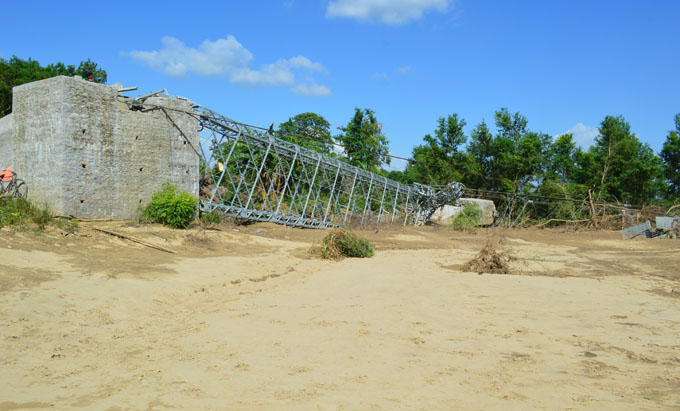 गुलरिया र पदनाहा गाविस जोड्ने बबईको खोलाको पुल बगाएपछि देखिएको अवशेष।