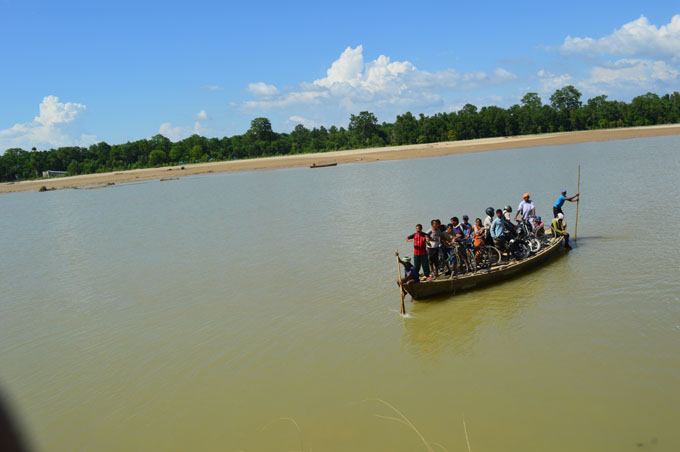 बबईले पुल बगाएपछि डुंगामा तर्दै बानियाभार र पदनाहाका स्थानीय।