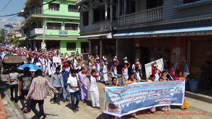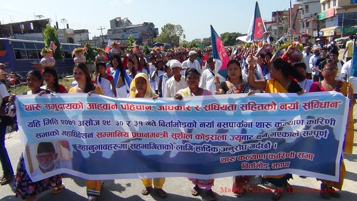 थारु कल्याणकारिणी सभाको २१औं महाधिवेशनमा थारु नेताहरुले एक भएर अगाडि बढ्नुपर्ने बताएका छन्। अब बन्ने नयाँ संविधानमा थारुका हक, अधिकार सुनिश्चित गराउन सबैजना एक हुनुपर्ने बताएका हुन्। नेपाली कांग्रेसका नेता उमाकान्त चौधरीले थारुहरुलाई मधेसी र जनाजति दुबैतिरका पेल्न खोजेको आरोप लगाए। देशकै ठूलो जनसंखया भएको थारुलाई लोकसेवामा मधेसी र जनजाति कोटा छुट्याएर विभेद गरेको उनको भनाइ थियो। त्यसैले पनि नयाँ संविधानमा त्यस्ता कुराहरु सुनिश्चित गराउन एक हुनुपर्ने बताए। पहिचानसहितको संगीयता लगाताका मुद्दामा एक भएर अगाडि बढ्नुपर्ने सहभागी नेताहरु मानपुर चौधरी, बलदेव चौधरी, शान्ता चौधरी, राजकुमालगायतले बताएाक थिए।