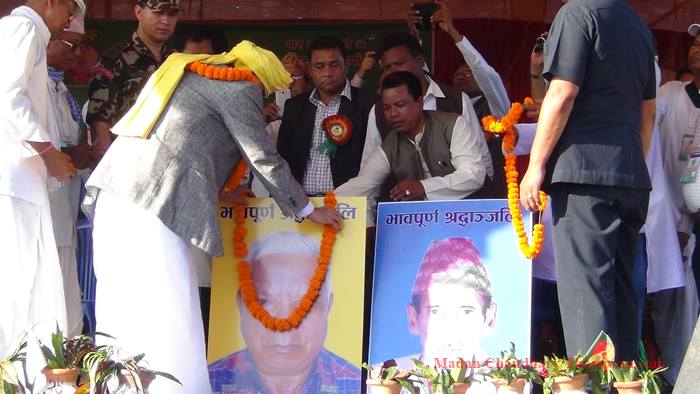 एक साताअघि निधन भएका झापाका कांग्रेस नेता थारु कल्याणकारिणी साभा झापाका अध्यक्ष काशीलाल चौधरीलाई श्रदाञ्जली अर्पण गर्दै।