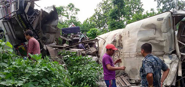 भारतीय ट्रक र बस एकापसमा ठक्कर खाँदा आठजनाको मृत्यु भएको थियो पछि उपचारका क्रममा एकजनाको ज्यान गएपछि मृत्यु हुनेको सङ्ख्या नौ पुगेको हो ।