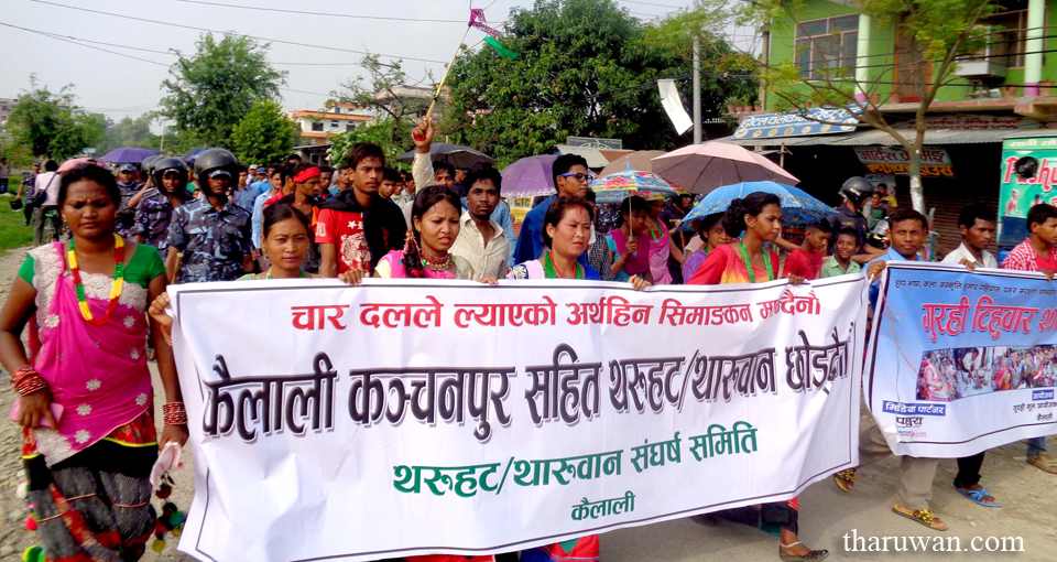 गुरही पर्वको अवसरमा सडकमा आयोजित कार्यक्रमलाई सम्बोधन गर्दै मधेसी जनअधिकार फोरम लोकतान्त्रिकका कैलाली उपाध्यक्ष गया प्रसाद कुश्मीले कैलाली–कञ्चनपुर सहितको थरुहट स्वायत्त प्रदेश कुनै हालतमा नछोडिने बताए।