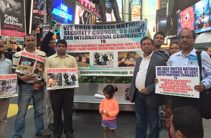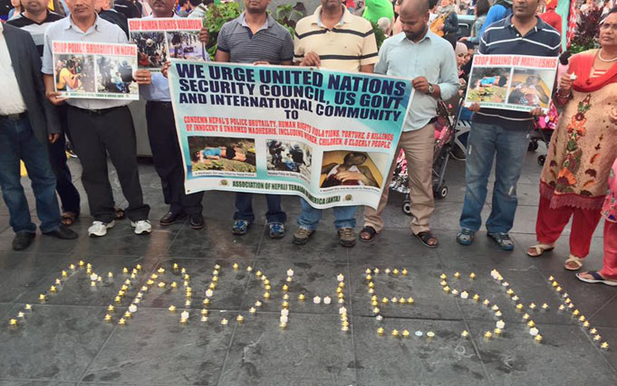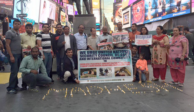 तराई-मधेसमा आन्दोलनका क्रममा ज्यान गुमाएकाहरुको सम्झानामा अमेरिकाको न्युयोर्कस्थित मधेसी-थारुहरुले दीप प्रज्जवलन गरेका छन्। उनीहरुले टाइम स्क्वायरमा मृतआत्को शान्तिको कामना गरेका थिए। सहभागीहरुले तराई-मधेसमा भइरहेको प्रहरी दमनविरुद्धको नारासहित पम्पलेट बोकेका थिए। उनीहरुले राज्यले मच्चाइरहेको आतंक र मानवअधिकार हननविरुद्ध आवाज उठाउन सबैलाई अपिलसमेत गरे।