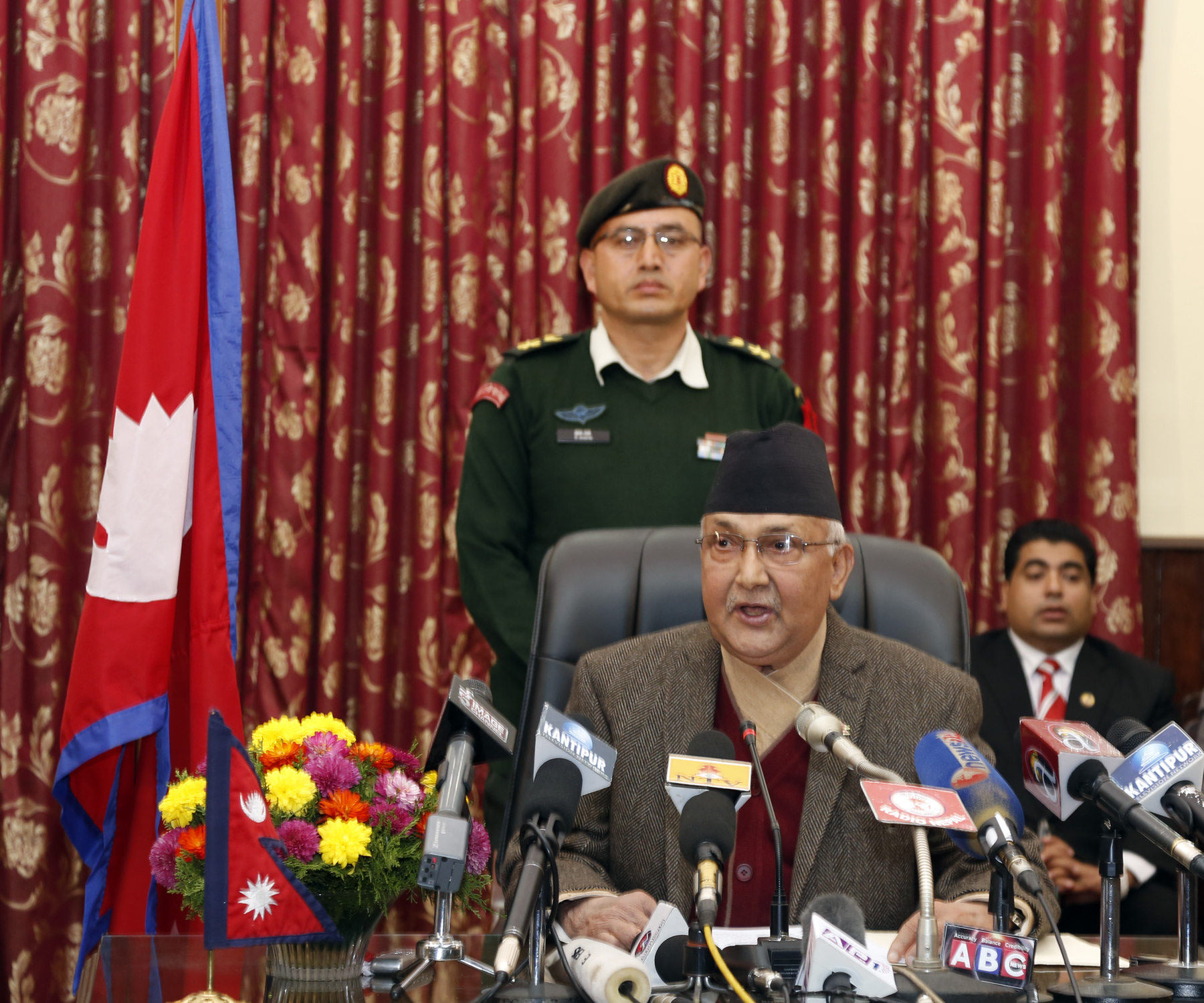 १) नेपालको नयाँ संविधान जारी भएपश्चात् गठन भएको पहिलो सरकारको प्रधानमन्त्रीको रुपमा तपाईहरुलाई संबोधन पाउंदा म गौरवान्वीत भएको छु । वर्तमान सरकार गठनमा प्राप्त तपाईंहरूको गहिरो विश्वास र व्यवस्थापिका–संसदका माननीय सदस्यहरूको समर्थन तथा सद्भावका लागि म हार्दिक आभार प्रकट गर्दछु। वर्तमान सरकारसँग रहेको आम जनताको अपेक्षा पूरा गर्न र इतिहासको यस महत्वपूर्ण कालखण्डमा आफ्नो काँधमा आएको जिम्मेवारी सम्पन्न गर्न पूर्ण रूपले समर्पित रहने विश्वास दिलाउन चाहन्छु ।