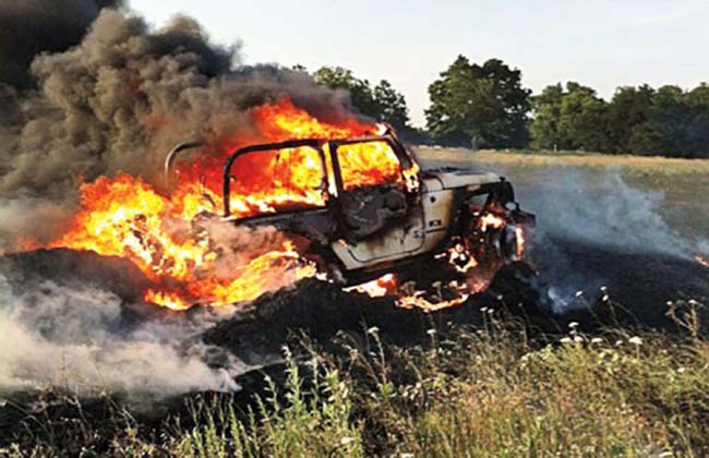थरुहट कार्यकर्ताद्वारा जीपमा आगजनी