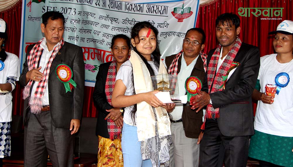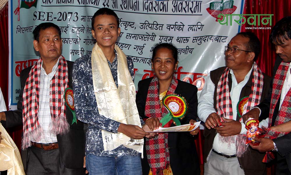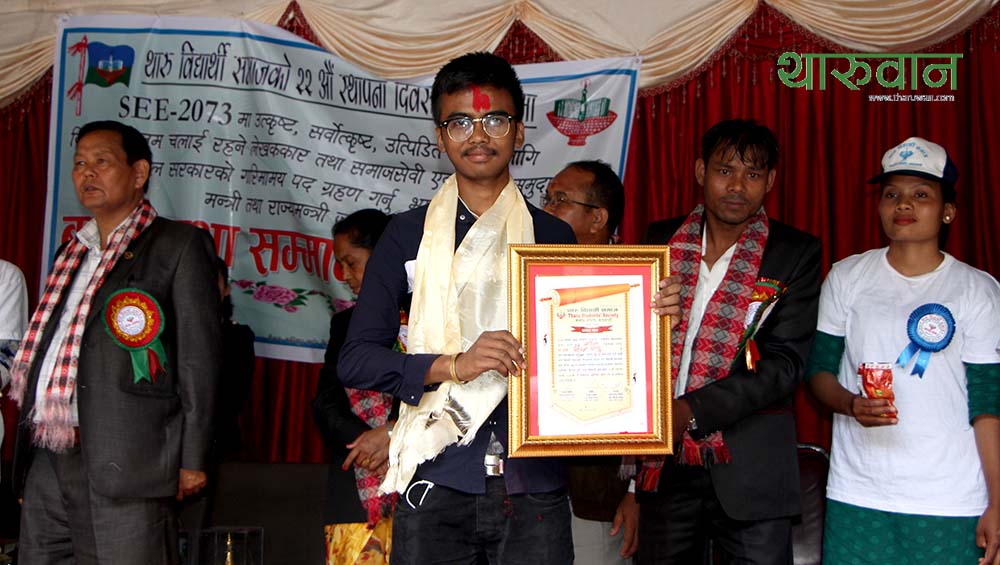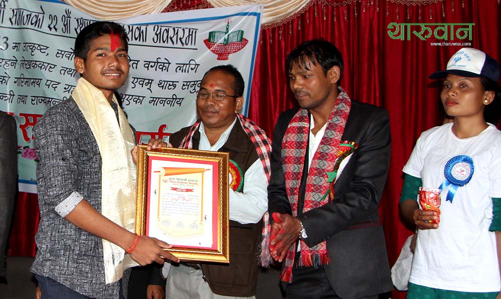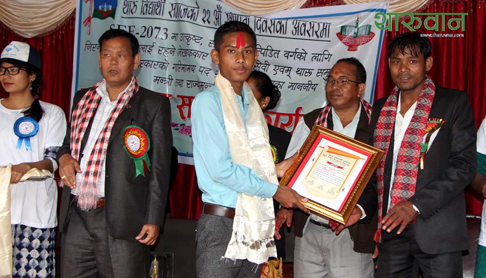 थारु विद्यार्थी समाजले २२औं स्थापना दिवस मनाएको छ। राजधानीमा एक कार्यक्रमको आयोजना गरी स्थापना दिवस मनाएको हो। स्थापना दिवसकै अवसर पारेर समाजले एसइइमा उत्कृष्ट नतीजा ल्याएका विद्यार्थीहरुलाई मायाको चिनोसहित सम्मान पत्र प्रदान गरेको छ। युवा तथा खेलकुद राज्यमन्त्री तेजुलाल चौधरी र पर्यटन तथा उड्डयन राज्यमन्त्री सुमित्रा थरुनीले संयुक्तरुपमा विद्यार्थीहरुलाई मायाको चिनो प्रदान गरेका थिए।