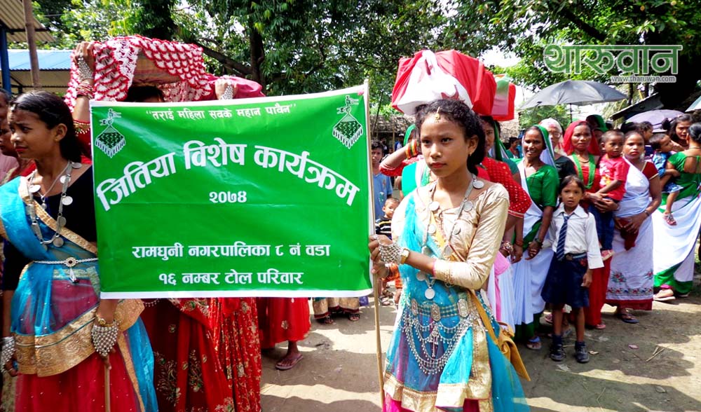 हरेक वर्षको अश्विन कृष्ण पक्षको अष्टमी तिथिमा मनाउने यो पर्व यस वर्ष भदौं २८ गते परे पनि पर्वको अवसर पारेर सम्पूर्ण थारु महिलाहरुले संयुक्त रुपमा कार्यक्रम गरी सुख दुःख साटासाथ गर्दै पहिचान झल्काउने विभिन्न कार्यक्रम गरी मनाइएको छ । जितिया पर्वमा श्रीमान, छोराछोरी र घरपरिवार सुख शान्तिका लागि निराहार वर्त लिने गरेको स्थानीय कविता चौधरीले बताइन ।