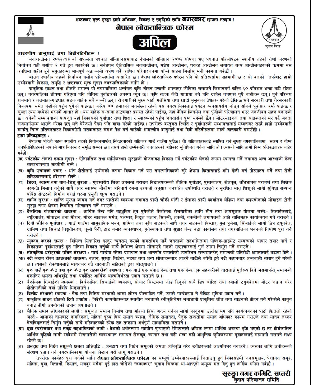 हेर्नुस् चौधरीले सुरुङ्गा नगरपालिकाबासीलाई गरेको प्रतिबद्धतापत्र।