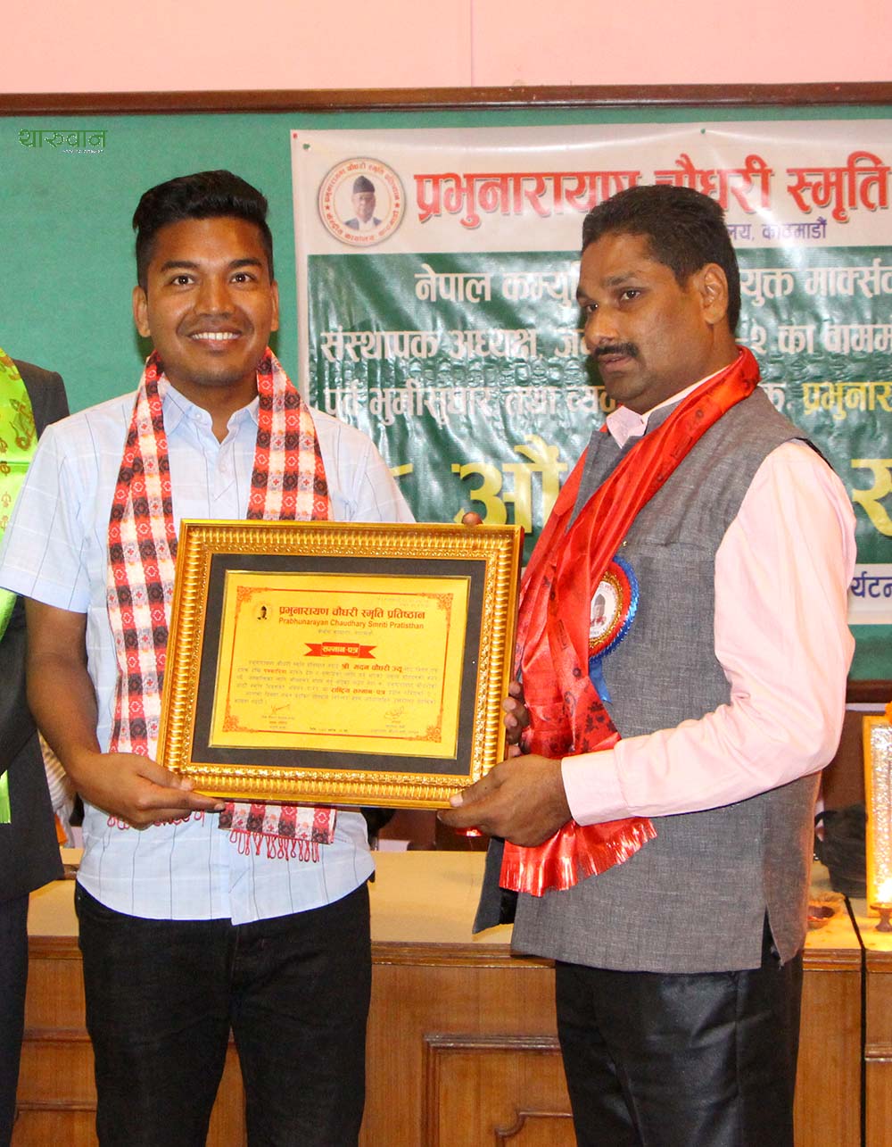 प्रभुनारायण चौधरी स्मृति प्रतिष्ठानले ८औं स्मृति दिवसको अवसरमा विभिन्न क्षेत्रमा रहेर राष्ट्रलाई योगदान पुर्याएका ब्यक्तित्वहरुलाई सम्मान गरेको छ। संगीत, कला, पत्रकारिताका माध्यमबाट राष्ट्रलाई योगदान पुर्याएका पत्रकार मदन चौधरी, रामशुभक महतोलगायत सात जना ब्यक्तित्वलाई प्रतिष्ठानले सम्मान गरेको हो।