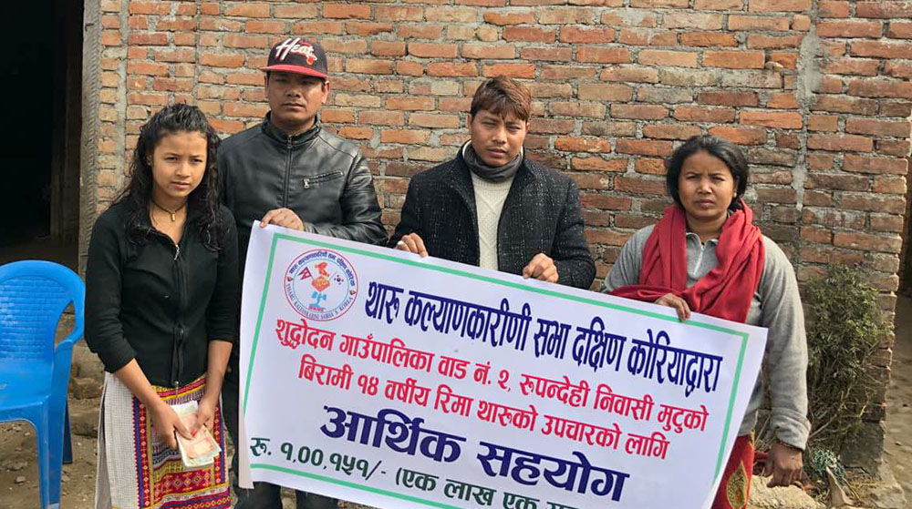 त्यस्तै रुपन्देहीको शुद्धोदन गाउँपालिका वडा नं. २ गोपालपुर बस्ने रीमा थारुलाई एक लाख १ सय ५१ रुपैयाँ हस्तान्तरण गरिएको छ। बनगाई मावि कक्षा ९ मा अध्यनरत १४ वर्षीय रीमाको मुटुमा समस्या आएपछि थाकस कोरिया च्याप्टरले त्यहाँ कार्यरत थारुहरुसँग रकम संकलन गरी उपचार्राथ सहयोग गरेको अध्यक्ष शिव चौरधीले जानकारी दिए। उक्त रकम यसैसंस्थाका पूर्वअध्यक्ष पुष्प चौधरीले हस्तान्तरण गरेका थिए।