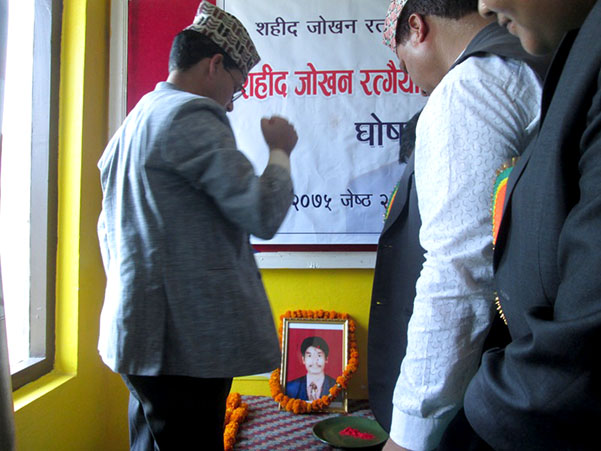 त्यसैगरी सामाजिक तथा विकासमन्त्री दिर्घ सोडारीले शहीद जोखन रत्गैँयाले उठाएको माग मुद्दाको आन्दोलन पूरा भएको बताए। उनले हिजोको विचारलाई व्यवस्थित गर्दै सबै जातजाति, भाषा, कला संस्कृतिको सम्मान गरे शहीदहरुको सपना पूरा हुने बताए।