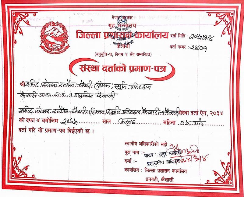 जोखन रत्गैँया चौधरी स्मृति प्रतिष्ठान कैलाली प्रशासनमा दर्ता