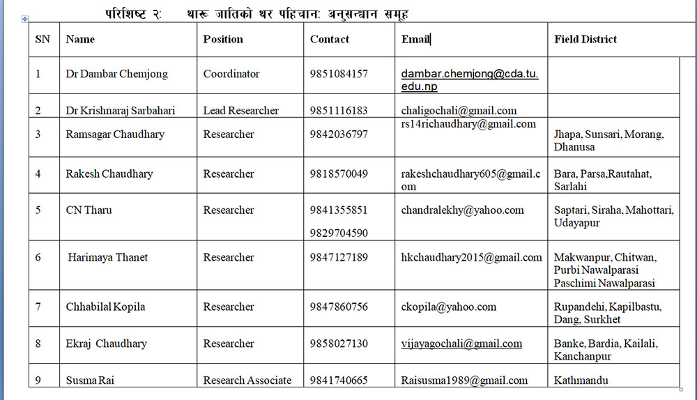 यी हुन् ९ जना अनुसन्धानकर्ताले तयार पारेका थारुहरुको ‘थर सूचीकरण’