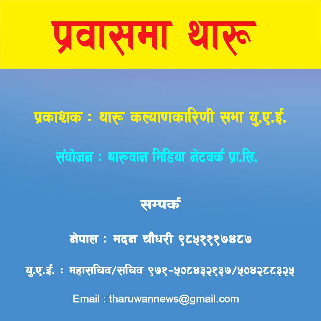 थारू कल्याणकारिणी सभा युएईले नयाँ वर्षको अवसर पारेर ‘प्रवासमा थारू’ नामक म्यागजिन प्रकाशन गर्दैछ। म्यागजिनका लागि चाहिने सामग्रीहरु अहिले तयार भइरहेको सचिव धर्मराज महतोले जानकारी दिए।