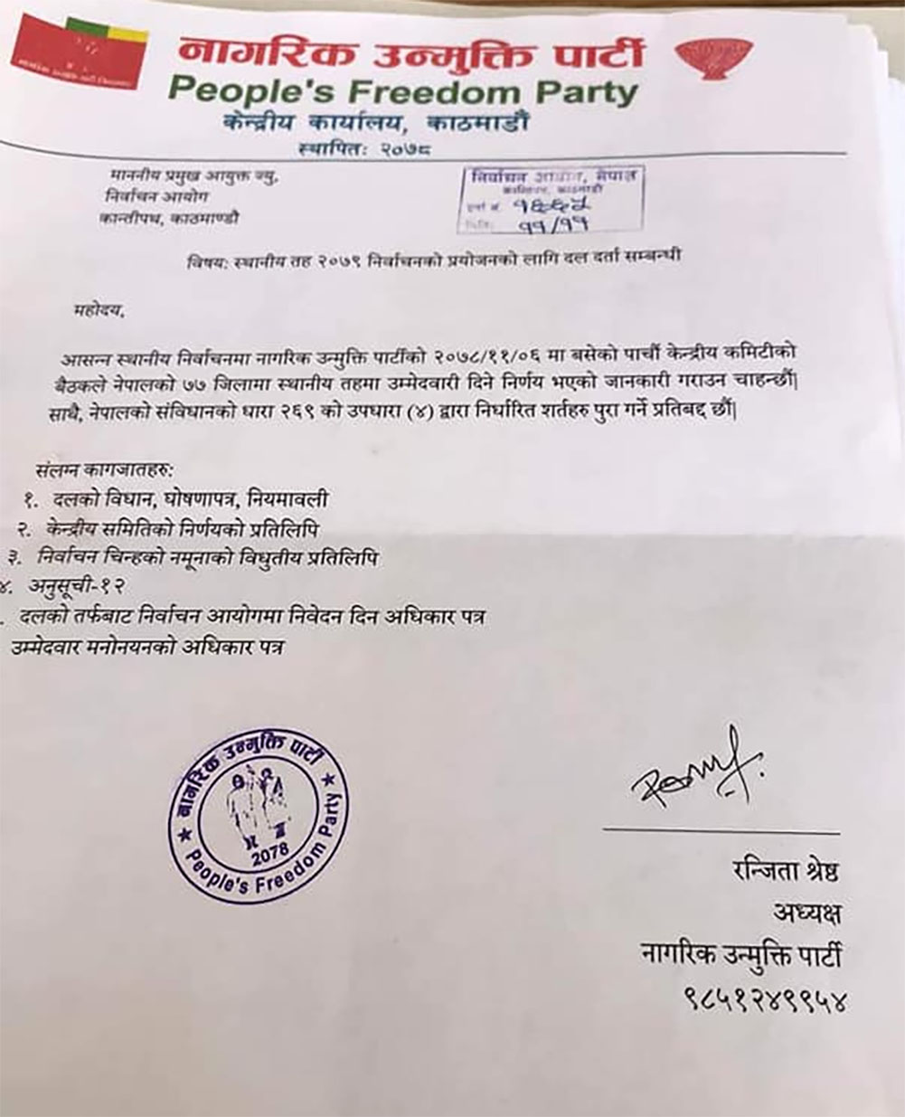 नागरिक उन्मुक्ति पार्टीले ७७ वटै जिल्लामा उम्मेदवारी दिने, निर्वाचन आयोगमा दल दर्ता