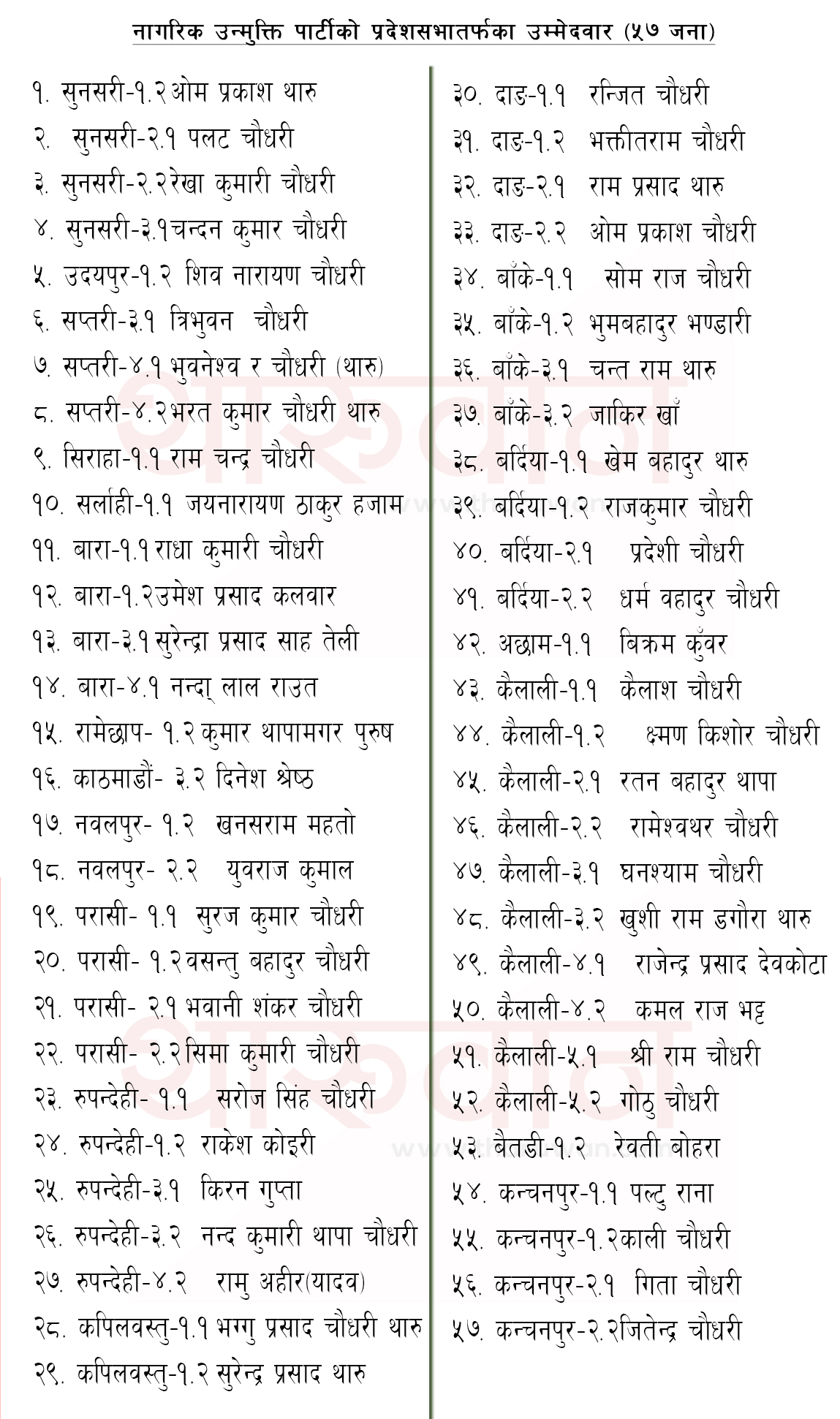 नागरिक उन्मुक्तिले प्रदेशसभामा युवा नेताहरूको वर्चस्वसहित उठायो ५७ उम्मेदवार (सूचीसहित)