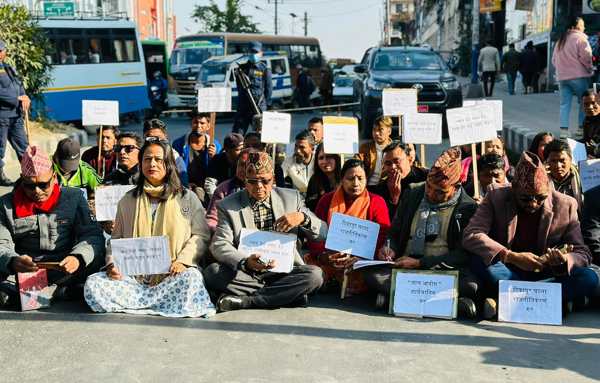 त्यस्तै रेशम चौधरीका बुबा लालविर चौधरीले न्यायका लागि धर्नामा बसेको बताए। ‘हामी अन्यायका विरुद्धमा यहाँ धर्नामा बसेका छौं। अपराध गर्ने मान्छेलाई कारबाही होस् र निर्दोषहरूको रिहाइ होस् भनेर हामीले चाहेका हौं,’ उनले भने।