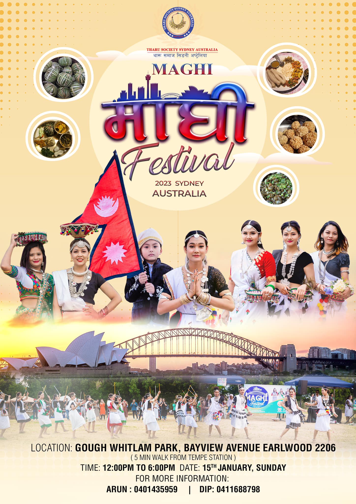 यसअघि दुईपटक माघी आयोजना गरिसकेको थारू समाज सिड्नी अष्ट्रेलियाले तेस्रोपटक माघी महोत्सव आयोजना गर्न लागिएको संस्थाका पब्लिक अफिसर अरुण आर्यन चौधरीले जानकारी दिए।