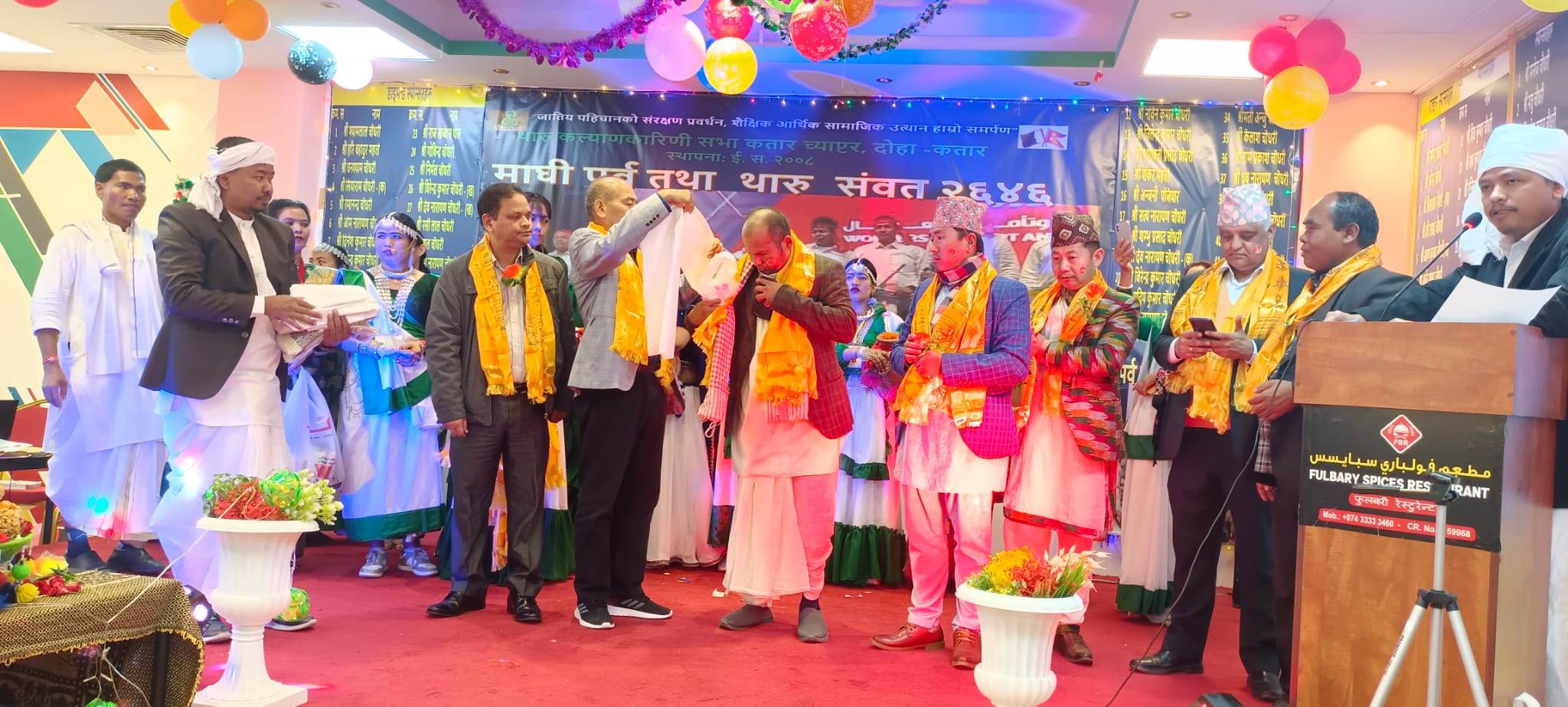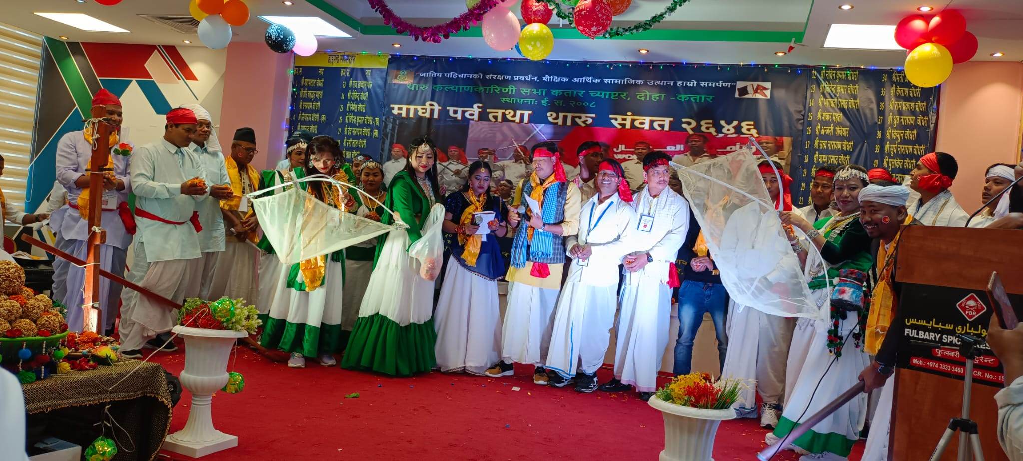 २० जनवरि, २०२३ शुक्रवारका दिन थारु कल्याणकारिणी सभा कतार च्याप्टरद्धारा “ आयोजित जातिय पहिचानको संरक्षण प्रवर्धन, शैक्षिक आर्थिक सामाजिक उत्थान हाम्रो समर्पण” भन्ने मुल नाराका साथ “माघी पर्व तथा थारु संवत २६४६” संस्थाका सभापति श्यामलाल चौधरी ज्यूको सभापतित्वमा नेपाल आदिवासी जनजाति महासंघ कतारका अध्यक्ष श्री पुरुषोतम सुनुवार ज्यूको प्रमुख आतिथ्यमा, गैरआवासीय नेपाली संघ, राष्ट्रिय समन्वय परिषद कतारका प्रथम उपाध्यक्ष श्री जैबी राई ज्यू, समाजसेवी तथा बुद्धिजीवी श्री कमलमणि गुरागाई ज्यू, , थारु कल्याणकारिणी सभा कतार च्याप्टरका संरक्षक ई. सिताराम चौधरी ज्यू,संयोजक सल्लाहकार तथा नेपाल आदिवासी जनजाति महासंघ कतारका पूर्व अध्यक्ष श्री सियाराम चौधरी ज्यू, विशेष सल्लाहकार ई. अन्जनी पंजियार ज्यू, नेपाली जनसम्पर्क समिति, कतारका सदस्य श्री तिलक राम घिमिरे ज्यू, प्रवासी नेपाली मंच कतारका उपाध्यक्ष श्री बालकृष्ण भित्रकोटी ज्यू, जनप्रगतिसिल मंच कतार कतारका सचिव श्री बिकाश गैरे ज्यू,नेपाली समाज कतारका अध्यक्ष श्री तेज मोक्तान ज्यू, प्रवासी नेपाली एकता मंच कतारका अध्यक्ष श्री रामहरी गैरे ज्यू, संघिय लिम्बुवान सामाजिक मंच कतारका संरक्षक श्री एतु कुमार लिम्बु ज्यू, नेपाल आदिवासी जनजाति महासंघ कतारका प्रमुख सल्लाहकार श्री शिब कुमार भुजेल ज्यू, नेपाल आदिवासी जनजाति महासंघ कतारका संस्थापक सदस्य तथा सल्लाहकार श्री सुक बहादुर तामाङ ज्यू, महासंघ कतारका सल्लाहकारहरु श्री शंख लाल तामाङज्यू , श्री नियम भुजेल ज्यू तथा श्री सामुयल सुनुवार ज्यू, नेपाल मगर सघं शाखा कतारका अध्यक्ष श्री विवेक पुलामी मगर ज्यू, किँरात याक्थुम चुम्लुङ्ग कतारका अध्यक्ष श्री हर्क खजुम लिम्बु ज्यू, किँरात राई यायोख्या शाखा कतारका अध्यक्ष श्री शंकरमान राई ज्यू, नेपाल प्रवासी तामाङ्ग सेवा समाज कतारका सचिव श्री पाखृन तामाङ ज्यू, सुनुवार सेवा समाज शाखा कतारका अध्यक्ष श्री नीर बहादुर सुनुवार ज्यू, प्रवासी भुजेल समाज कतारका अध्यक्ष श्री युवराज भुजेल ज्यू, नेपाली धानुक सेवा समाज कतारका महासचिव श्री तेजिलाल मन्डल ज्यू, शेर्पा किदुक दोहा कतारका अध्यक्ष श्री तेन्जी शेर्पा ज्यू,नेपाल आदिवासी जनजाति साहित्यकार महासंघ कतारका अध्यक्ष श्री बिमल राई ज्यू, सर्लाही प्रवासी सेवा समाजका अध्यक्ष प्रकाश आले मगर ज्यू , बुद्धिजीवी: ई. पदम नारायण शाह ज्यू तथा बुद्धिजीवी: ई. अरुण भगत ज्यू, व्यवसायी तथा बुद्धिजीवी श्री राम भुवन चौधरी ज्यू, कल्याणकारिणी सभा कतार च्याप्टरका सलाहकारहरु, श्री सत्य नारायण चौधरी ज्यू, श्री शम्भु नारायण चौधरी ज्यू, श्रीमती शान्ति चौधरी ज्यू, श्री देव नारायण चौधरी ज्यू, श्री हरि ब
