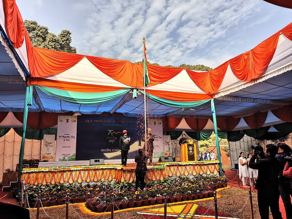 भारतीय दूतावासले भारतको ७४औं गणतन्त्र दिवस मनाएको छ। लैनचौरस्थित दूतावासमा बिहीबार गणतन्त्र दिवस मनाइएको हो। नेपालका लागि भारतीय राजदूत नवीन श्रीवास्तवले भारतको राष्ट्रिय झण्डा झण्डोत्तोलन गर्दै राष्ट्रपति द्रौपदी मुर्मूले राष्ट्रका नाममा गरेको सम्बोधन वाचन गरेका थिए।