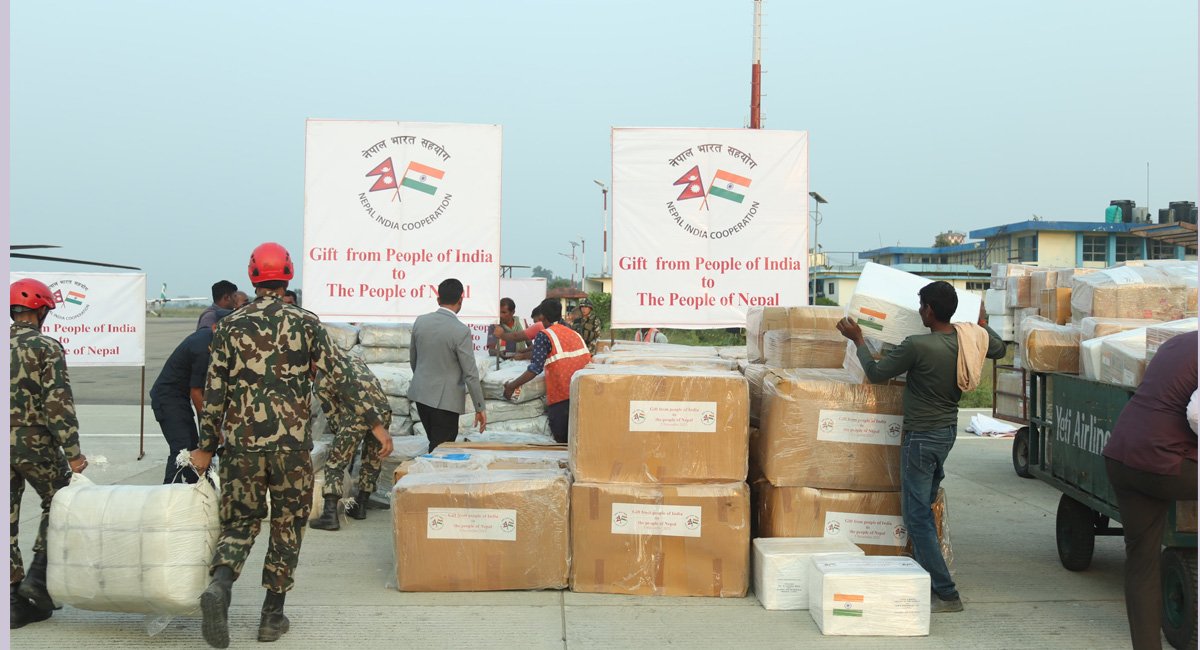 राहत सामग्री लिएर भारतीय वायुसेनाको विमान नयाँ दिल्लीबाट नेपालगन्ज आएको थियो। सो विमानले ११ टनभन्दा बढी आपतकालीन सामग्री ल्याएको थियो।