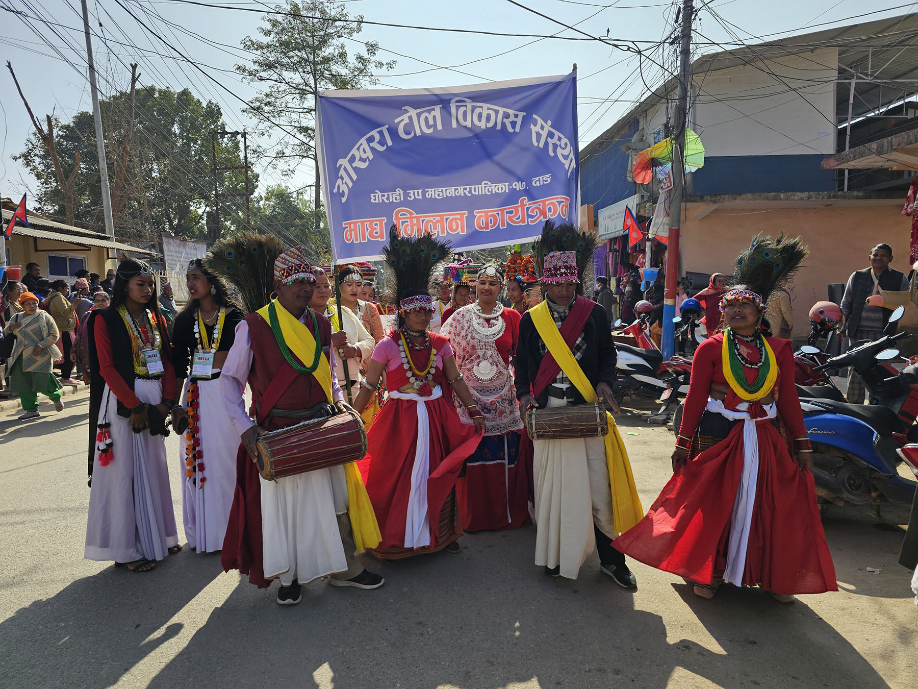 थारू कल्याणकारिणी सभाको आयोजनामा दाङको घोराहीमा ‘माघ साँस्कृतिक महोत्सव’को आयोजना गरिएको छ। महोत्सवको घोराही उपमहानगरपालिकाका मेयर नरुलाल चौधरीले उद्घाटन गरे। घोराहीको ट्राफिकचोकबाट सुरु भएको झाँकीसहितको जुलुस बजार परिक्रमापछि शहीदमञ्चमा पुगेर सभामा परिणत भएको थियो।