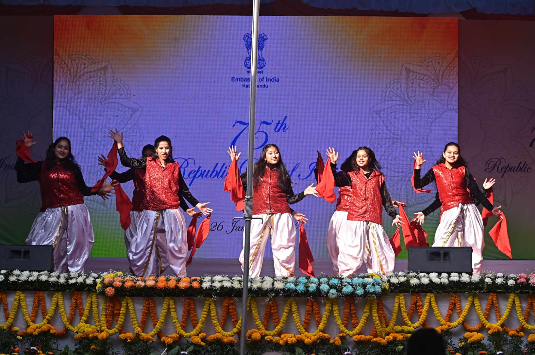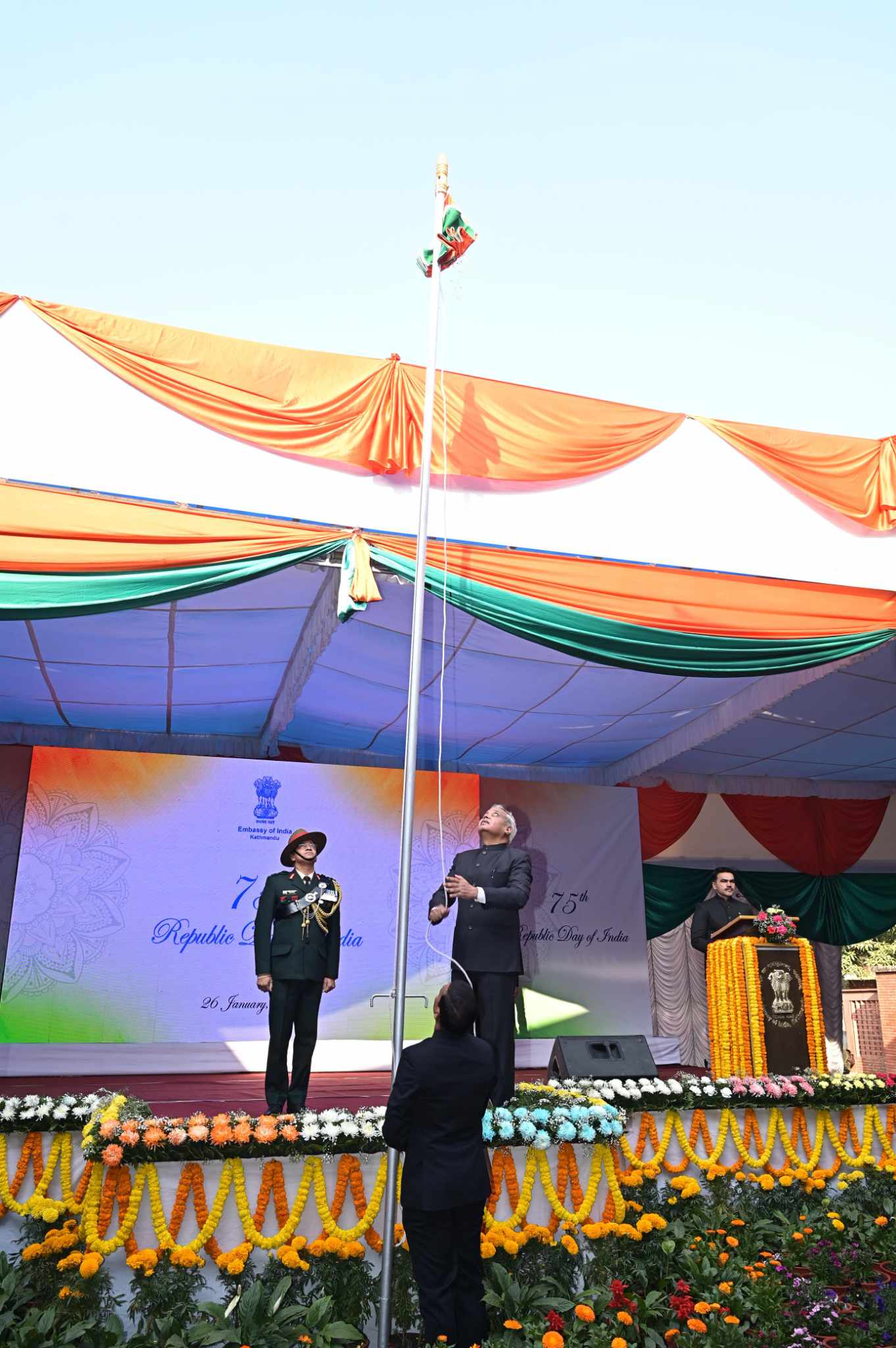 नेपालस्थित भारतीय राजदूतावासले भारतको ७५औं गणतन्त्र दिवस मनाएको छ। काठमाडौंस्थित भारतीय दूतावासामा आयोजित समारोहमा नेपालका लागि भारतीय राजदूत नवीन श्रीवास्तवले भारतको राष्ट्रिय झण्डा झण्डोत्तोलन गरी कार्यक्रमको शुभारम्भ गरे।