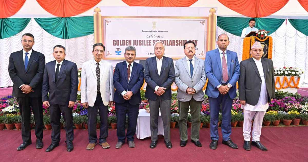 काठमाडौंस्थित भारतीय राजदूतावासले शुक्रबार २२ औं स्वर्ण जयन्ती छात्रवृत्ति दिवस मनाएको छ। दूताबासमा आयोजित कार्यक्रममा नेपालका लागि भारतीय राजदूत नवीन श्रीवास्तवले स्वर्ण जयन्ती छात्रवृत्ति प्राप्त गरेका पहिलो ब्याचका ९ जना विद्यार्थीलाई राजदूतको स्वर्ण जयन्ती छात्रवृत्ति रोल अफ अनर प्रदान गरेका हुन्।