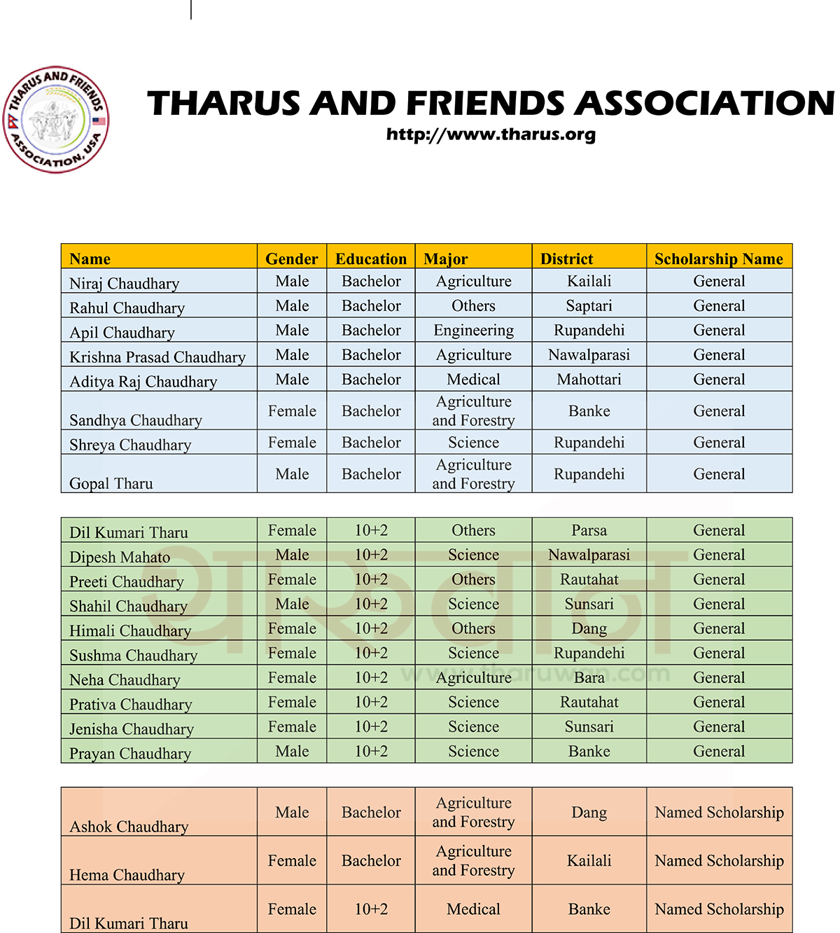 यी हुन् अमेरिकी थारू संस्था टीएफएको छात्रवृत्ति पाउने २१ जना थारू विद्यार्थीहरू