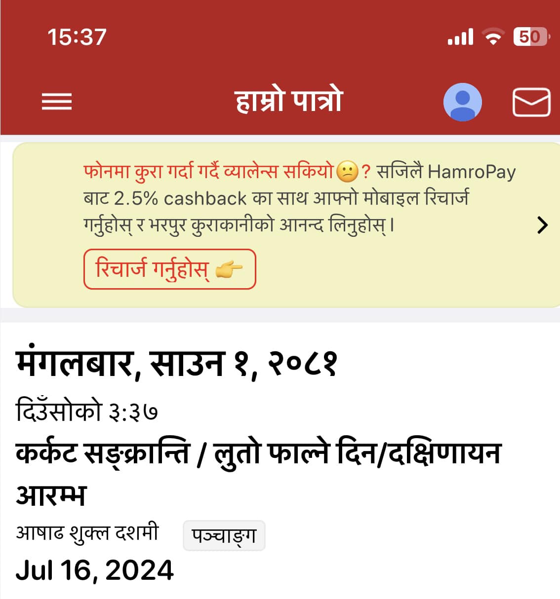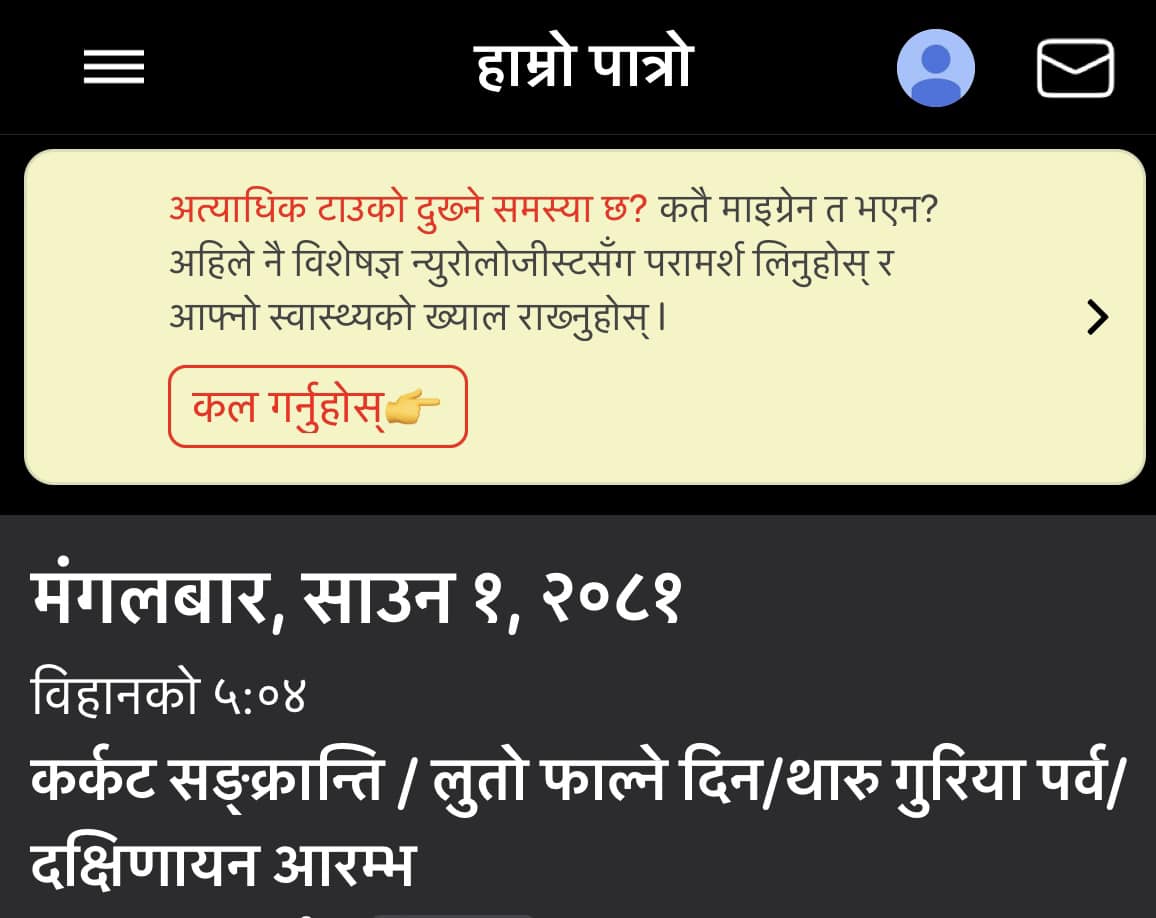 उनले फेसबुकमा लेखेका छन्, ‘थारू समुदायले मनाउने साँस्कृतिक पर्व गुरिया/गुरही पर्व साउन १ गतेका दिन हो भनेर हाम्रो पात्रो एप्पसले आफुखुसी राख्यो या कसैको सल्लाहमा ? यसखालको गलत र मनगढन्ते सुचना प्रति घोर आपत्ति छ । गलत सुचना तत्काल पात्रोबाट हटाइयोस। स्मरण रहोस् गुरही पर्व साउन २५ गते पर्दछ।’