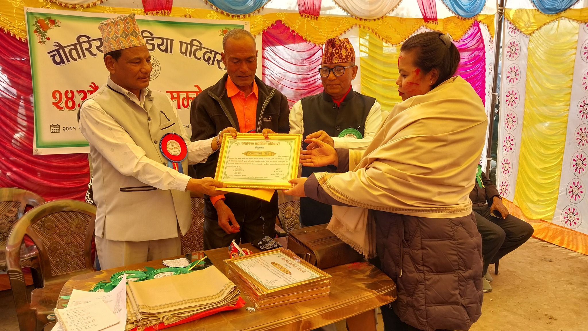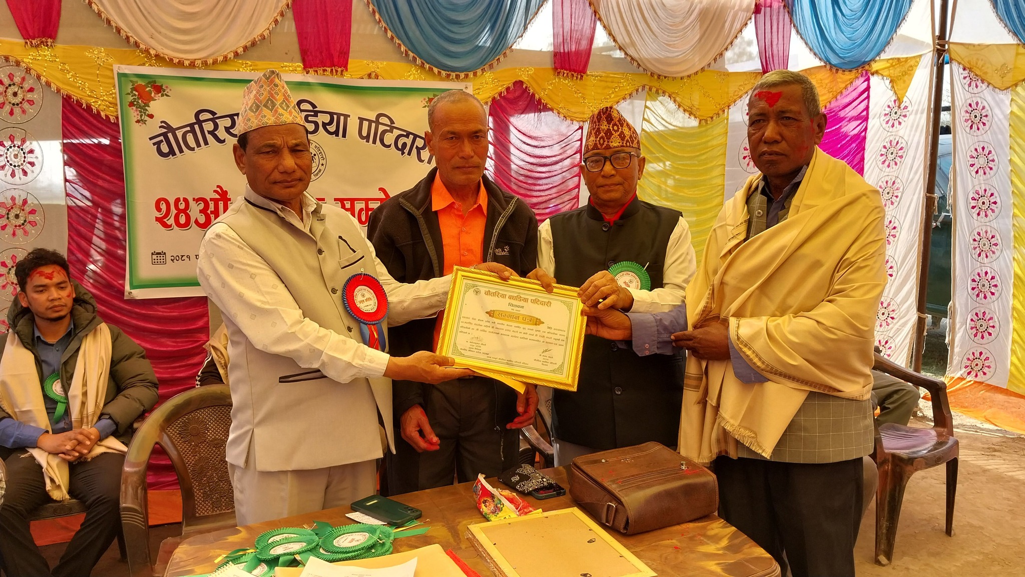 चौतरिया बघडिया पटिदारी चितवनले स्वास्थ्य क्षेत्रमा कार्यरत आफ्ना पटिदारीभित्र पर्ने आठ जना युवालाई प्रोत्साहन स्वरुप सम्मान गरेको छ। पटिदारीको २४औं वार्षिक सम्मेलनमा ती युवाहरूलाई सम्मान गरिएको हो।