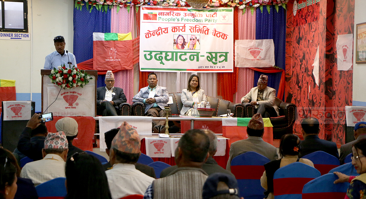 नागरिक उन्मुक्ति पार्टीको केन्द्रीय कार्यसमिति बैठक शुक्रबारबाट काठमाडौंमा सुरु भएको छ। सिके राउत नेतृत्वको जनमत पार्टीसँग एकताका लागि औपचारिक निर्णय गर्न नागरिक उन्मुक्ति पार्टीको केन्द्रीय कार्यसमिति बैठक बसेको हो।