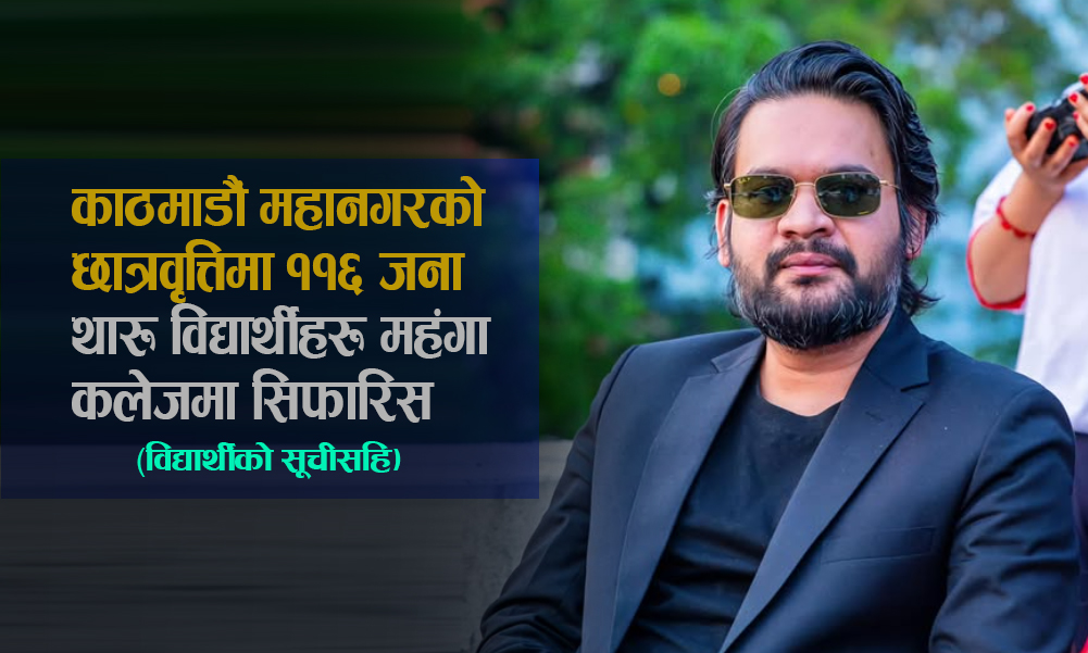काठमाडौं महानगरपालिकाले प्रदान गर्ने कक्षा ११ र १२ को छात्रवृत्तिमा ११६ जना थारू विद्यार्थीहरू छनौट भएका छन्। कूल ३ हजार ३६१ जनामध्ये ११६ जना थारू विद्यार्थीहरू काठमाडौं महानगरभित्र पर्ने विभिन्न कलेजमा सिफारसि भएका हुन्।