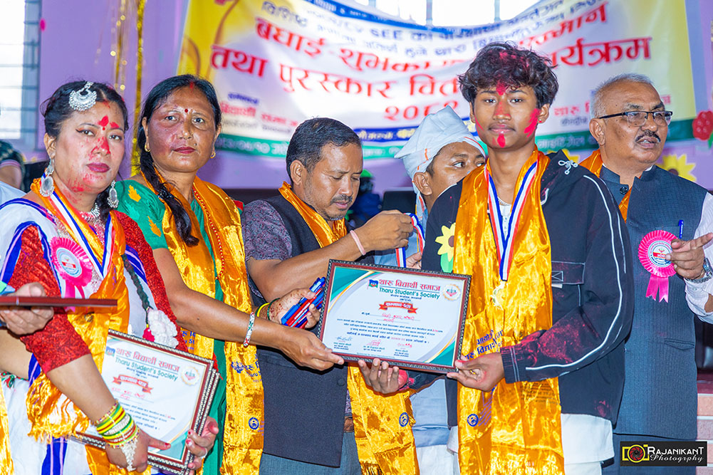 त्यस्तै एसईईमा ४ जीपीएसहित उत्कृष्ट नतिजा ल्याउने तीन जना विद्यार्थीहरूलाई नगदसहित सम्मान गरिएको थियो। जसमा कपिलवस्तुका प्रिशिला थारू र सप्तरीका तेजिना चौधरी कार्यक्रममा सहभागी भई सम्मानित भएका थिए। ४ जिपिए ल्याउने कैलालीका एक जना विद्यार्थी अनुपस्थित भएका थिए। उनको सम्मानपत्र कैलाली जानकी गाउँपालिकाका प्रशासकीय अधिकृत आशिष चौधरीमार्फत प्रदान गरिएको थारू विद्यार्थी समाजले जानकारी दिएको छ।