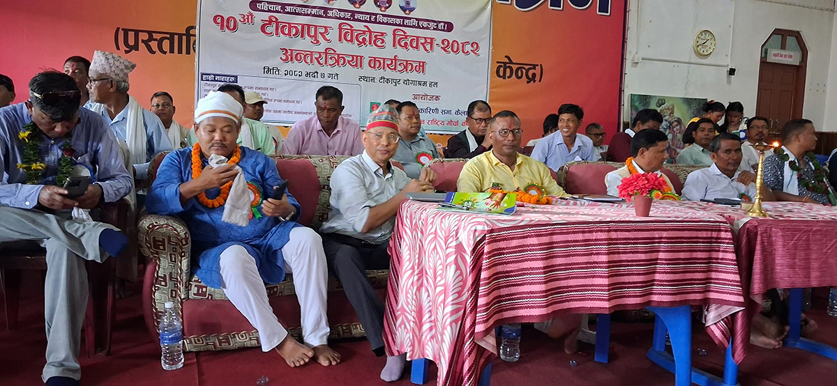 त्यस्तै कैलालीको टीकापुरमा पनि थारू कल्याणकारिणी सभा कैलाली शाखा र थरूहट थारूवान राष्ट्रिय मोर्चाले विद्रोह दिवस मनाए। कार्यक्रममा नेपाली कांग्रेसका नेता रामजनम चौधरी, गोपाल दहित र अभियन्ता सुरेन्द्र चौधरीलागतय सहभागी थिए।